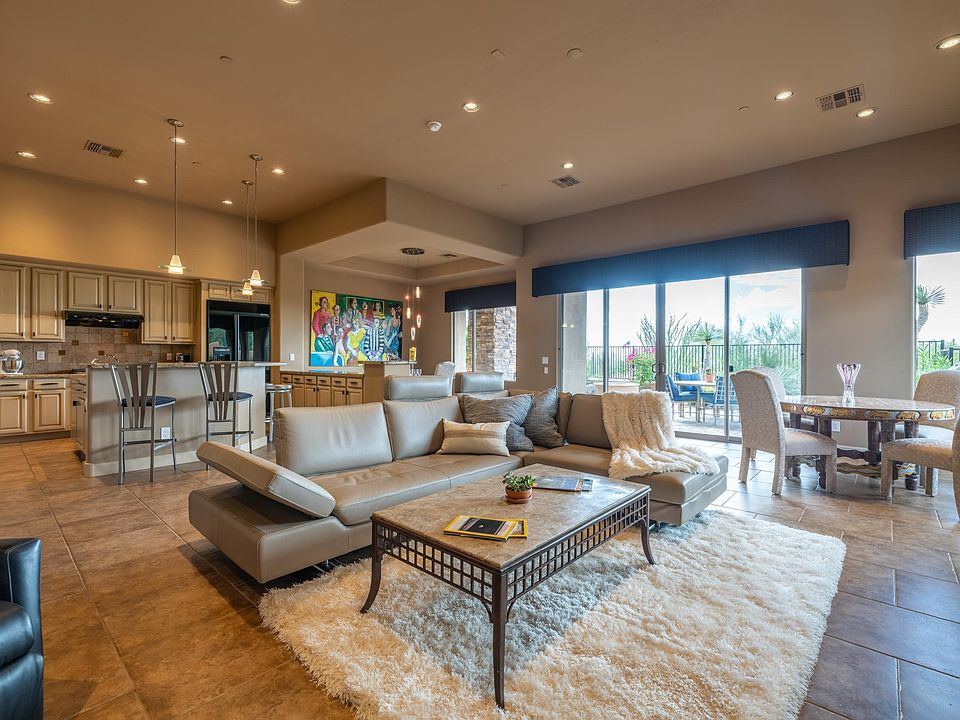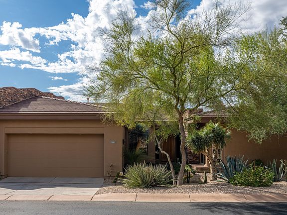 Nestled on the southside of Troon Mountain, Tusayan is an exclusive gated community delivering the perfect backdrop for your new home. Featuring a spacious great room layout that is airy and bright with windows galore, you will appreciate ample room for entertaining. The Master Bedroom has a separate exit to the extended covered patio spanning the back of the home. Beautifully manicured, enhanced with various desert plants, landscape lighting, firepit and built-in BBQ, this private south-facing yard is the perfect setting to enjoy glorious sunsets, mountain views and yes, the iconic Pinnacle Peak! Remember, just off the foyer you also have a private office and with the ideal split floorplan your guest quarters with en suite are accessed through the den to provide true privacy for guests.