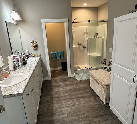 Convenience is key with the laundry room accessible from both the hallway and master closet, eliminating the hassle of carrying laundry across the house. The guest bath offers an oversized tub/shower and a 60" raised vanity, ensuring comfort for your guests.
