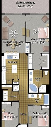 - Mstr Bdrm/Mstr Bath: MBed Balcony, MBath Tile, MBath Double Vanity, MBath Separate Shwr, MBath Walk-In Closet, MBath Dressing Area, MBed Waterfront