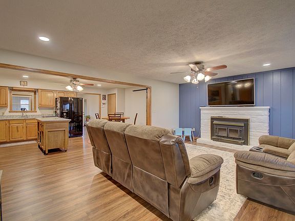 Beautiful setting with 2.03 acres with a 4 bedroom, 3 full bath ranch, finished lower level, 2 car attached garage and 24x24 detached garage. Open floor plan. Spacious kitchen featuring granite countertops, pantry, island and all appliances stay. Master bedroom W/ceiling fan, walk in closet adjoining bath, double vanity, jetted tub and shower. Large laundry room, recessed lights, all seasons room, laminate flooring throughout 1st floor, newer carpet in bedrooms & lower level. Lower level w/ full bath family room, 4th bedroom, rec & bar area. 24x24 Pole barn w/ 10x24 lean to.