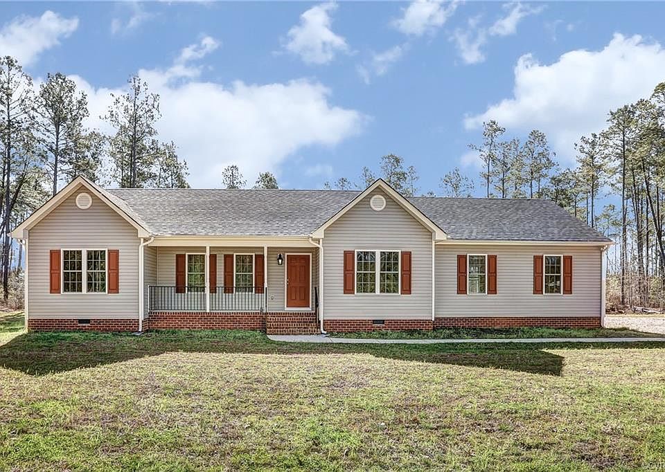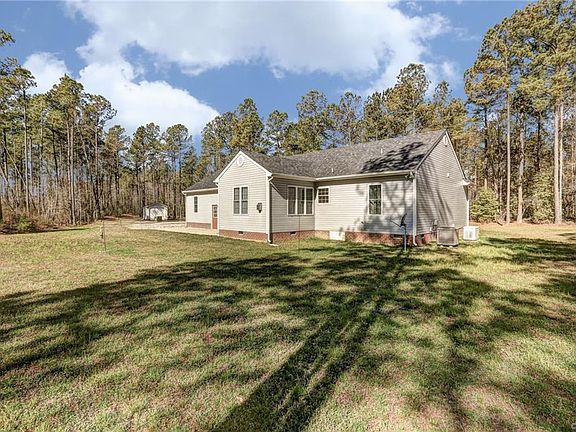 Beautiful 3 year old 3 bedroom, 2 full bath split plan rancher, handicap equipped on 6.489 acres in Prince George county. This home has it all! Everything on one level, hardwood floors throughout except for baths, which are vinyl. 2-car attached garage, front porch, large cement patio in rear accesses morning room/sun room w/gas log fireplace - Open floor plan makes entertaining easy! Jackson Security Alarm System, Stand-by whole house generator, Hybrid gas/electric heating system, pull down stairs to attic, electric h/w heater, 2 car 24x26 garage, wide doorways, alternative septic system (drainfield behind lp gas tank), new water treatment system, 12x20 storage shed with garage type roll up door, comfort height toilets, handicap rails in master shower, wide doorways for walker/wheelchair - just a lovely lovely home.