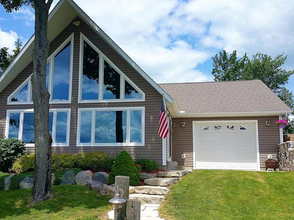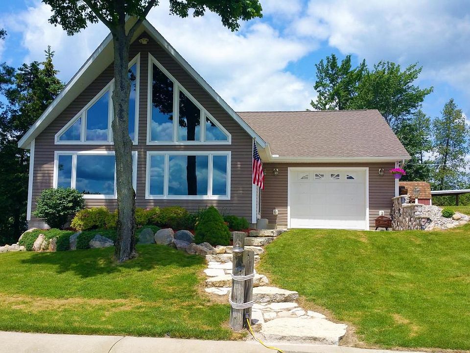 One of a kind opportunity! 2 for 1, Custom build home with prime south facing frontage on amazing all-sports Chippewa Lake, and an additional property with frontage on the lake access channel. Built in 2009, the home is grandiose, and has everything you would want in a lake living experience. Massive tinted glass wall gives you a spectacular view of the lake, which is just a few feet from the front of the home. Stone Fireplace, lofted ceilings, open concept living areas, and a drive-through attached garage make this home unique and a must see. The second property is the envy of the neighborhood, and just across he street, featuring premium lake channel frontage, a three plus car garage, and large heated workshop, all on a double lot. Includes an immaculate pontoon! Call for the full list!