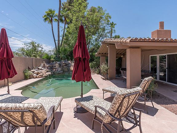 Incredible! - This luxury property has it all. Beautifully remodeled home, guest house and oasis back yard. A circular driveway and walled courtyard invite you inside to discover vaulted ceilings, tile floors, granites, custom cabinetry and French exits.The large family room opens to the kitchen and has an impressive double sided split-stone fireplace with sitting area. The professional kitchen WOWS with custom cabinetry, granite counters, Asko, Thermador, GE Profile and Sub-Zero stainless appliances, gas range with stainless hood, eat-at island and a temperature controlled wine closet. There is also a media room and bonus room. Spacious master suite has dual walk-in closets, a sitting room/office, oval jetted tub and snail shower with glass block and tile surround. Guests will love the detached casita with kitchen. This home has five bedrooms, four bathrooms, inside laundry and 3,217 square feet of living space including the guest casita. The back yard is beautifully landscaped with mature trees, grass and pavered walkways. Covered and fresh air patios, stamped concrete floors, sparkling pool with massive boulder water feature/slide, BBQ kitchen with eat-at bar and romantic fireplace with seating. There is plenty of parking with a RV gate/slab parking and a four car garage with work area. Large almost an ACRE lot. Short sale. As is.