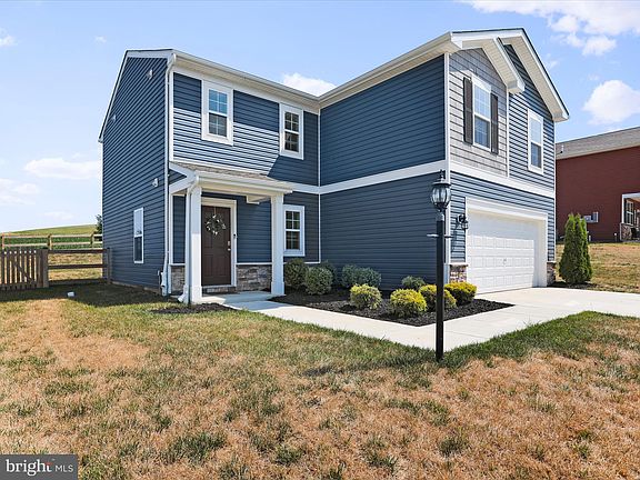 GRAND OPEN HOUSE SCHEDULED FOR SATURDAY 7/20 - 12-2PM MARTINS RIDGE WELCOMES YOU! This like-new 4BR/2.5 bath home is loaded with upgrades and is ready for new owners. Built in 2020, the residence is situated on a lovely 0.25 acre lot backing up to beautiful farm views and offering nearly 2,000 sqft of finished living space. Upon entry from the front porch, luxury vinyl plank flooring flows seamlessly through the open concept floorplan. A spacious living area leads to the dining space and gourmet kitchen boasting an oversized island with farmers sink, granite countertops, SS appliances, natural gas oven and custom cabinetry. From here you can access the paver patio overlooking the fenced backyard, perfect for entertaining! Upstairs holds 4 spacious bedrooms highlighted by the primary suite featuring a massive walk-in closet and full bath with double sinks on granite countertops. The secondary bathroom upstairs features another double vanity sink perfect for your family and guests. Efficient natural gas heat will keep everyone warm throughout the winters. Kitchen appliances and utility systems are only 4 years old – all you need to do is move in. Conveniently located to all surrounding towns, this is one you do not want to miss. Come tour this home before its gone!