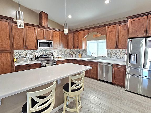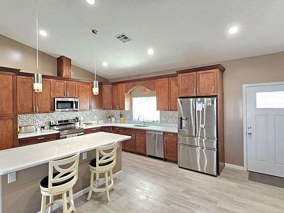 Come see this stunning 2023 newly built 4-bed, 3-bath property with NO HOA! Situated on over an acre of land with mountain views, 2-car garage, and plenty of space for your pets or off-road toys, you'll feel like you're in your private oasis. Discover a perfectly flowing open layout paired with tons of natural light, vaulted ceilings, two-tone palette, wood-look tile flooring, elegant light fixtures, and French doors to the back. The gourmet kitchen has SS appliances, Quartz countertops, designer tile backsplash, plenty of cabinets, and an island w/breakfast bar. Enter the main bedroom to find an ensuite with dual sinks & walk-in closet. Relax under the covered patio of your expansive backyard! Whether entertaining guests or enjoying your own space. Motivated Sellers, make an offer today.