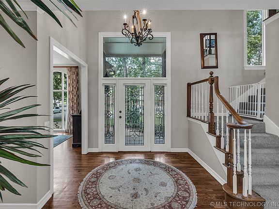 Half acre lot in Jenks SE Schools, Stunning updates throughout: 108 Kitchen & Bath Design Group, custom cabinetry, Quartz island, Sonic ice maker, new lighting, custom refrigerator/freezer, double ovens, beverage refrigerator and pantry. Half bath off the kitchen is updated as well as another powder room! Hardwoods throughout the downstairs & fresh interior paint. Living area new lighting, fireplace, Custom window coverings. Master bedroom downstairs with hardwoods, master bathroom upgraded as well as heated floors & tankless hot water heater. Separate office. Upstairs has 4 bedrooms with 2 updated full baths plus game room. All new carpet, light switches & tamper resistant outlets throughout the home. 3 zones heat/air 2021 & 2022, 3 car garage, Backyard remodel includes new pool decking, custom built fireplace, outdoor kitchen with granite counters, built in griddle & charcoal grill. located on a semi cul-de-sac.