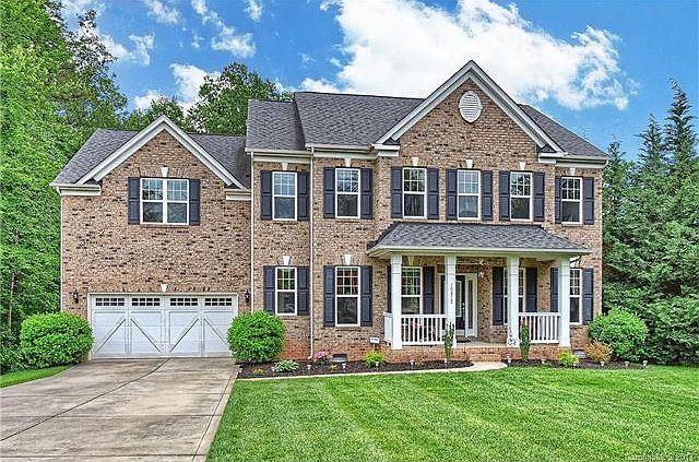 Full brick w/ rocking chair front porch on cul-de-sac lot! Features include: formal living & dining room, kitchen features HUGE island, granite counters, 42" cabinetry w/ under cabinet lighting, stainless appliances, butlers pantry, 2-story great room w/ fireplace, spacious master w/ tray ceiling & sitting area. Deck & gazebo overlook spectacular wooded views. Back yard is adjacent to walking path for Wilgrove Mint Hill Park offering walking trails, tennis courts,softball field & playground.