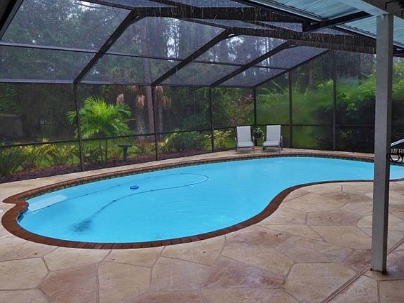 One of a kind opportunity in desirable Braden Pines! Private home on over an acre with no deed restrictions! USDA Eligible! Enjoy all the Lakewood Ranch area has to offer without any HOA or CDD fees. The large lot with mature landscaping and lots of beautiful trees offers lots of room to relax and to play. You'll find tile flooring throughout the open floor plan with separate living room, dining room, family room with wood burning fireplace, open kitchen with breakfast bar, three bedrooms and two baths. Kitchen has been updated with granite counter tops, stainless steel appliances bead board ceiling and wood cabinets. Master suite has a large bedroom and updated bathroom with granite countertops, garden tub and a large shower with double shower heads. The dining room, kitchen and family room look out onto the screened lanai with sparkling free form pool. Beautiful, spacious back yard with a gorgeous view provides a great spot for all of your outdoor activities, including relaxing with friends around the fire pit. You can park an RV or boat with lots of room to spare. Large separate workshop/shed (30' x 20') with electricity to hold your toys, store garden tools and other equipment. Conveniently located close to I-75, shopping, Lakewood Ranch Main Street, restaurants, the new mall, beaches and LOTS more!!!