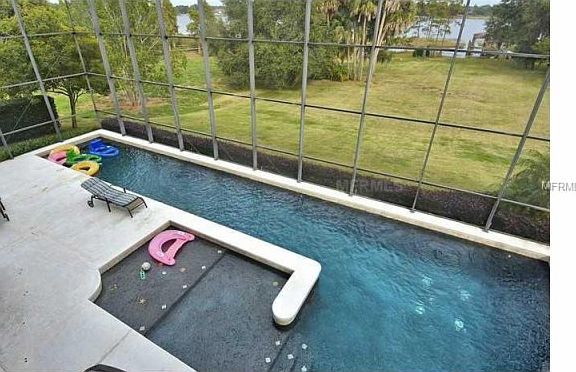 Sea Plane? Boat? Jet Skis? Bring it all to this Gorgeous custom built gated lakefront home. 5/5 plus office, gym,bonus, oversized garage on over an acre of lakefront land with 220' of shore! Hardwood floors, wide hallways and 8' doorways gives an open feel. Perfect floor plan: Master w/ spa like bath, steam/shower, private gym and 5th bedroom downstairs, 3/2 upstairs. Poured concrete tilt up walls. Screened heated salt lap pool with sun shelf. Storage lovers dream!