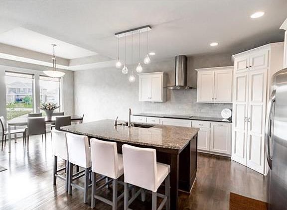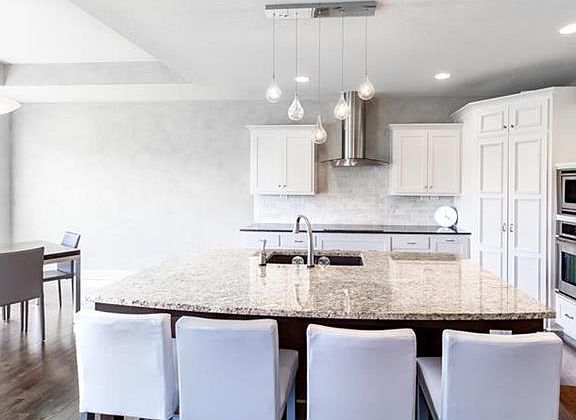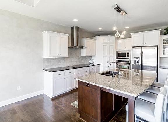 Like New Rodrock Dillon Reverse 1.5 story, a beautiful combination of indoor and outdoor spaces, open floor plan is an entertainers dream, 2 sided fireplace out to the oversized deck, first floor master w/ incredible tiled bath and adjoining laundry, walkout lower level w/ bar/ rec room and 2 additional bedrooms. all this and walk to community pool and Olathe Northwest High School. High efficiency furnace and water softener