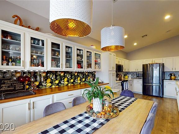 Beautiful Summerlin home! Spacious single story home with upgrades throughout. Kitchen remodel includes custom white cabinets, beautigl backsplash, quartz countertops, farm table sink, and custom lights. Lovely laminate floors and ceiling fans throughout. Gorgeous low maintenance backyard with a cover patio, artificial grass, and a built-in barbeque perfect for entertaining. Close to Downtown Summerlin and many attractions. Come check it out!