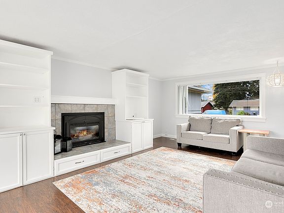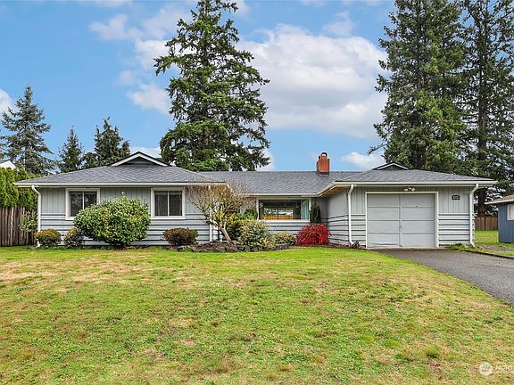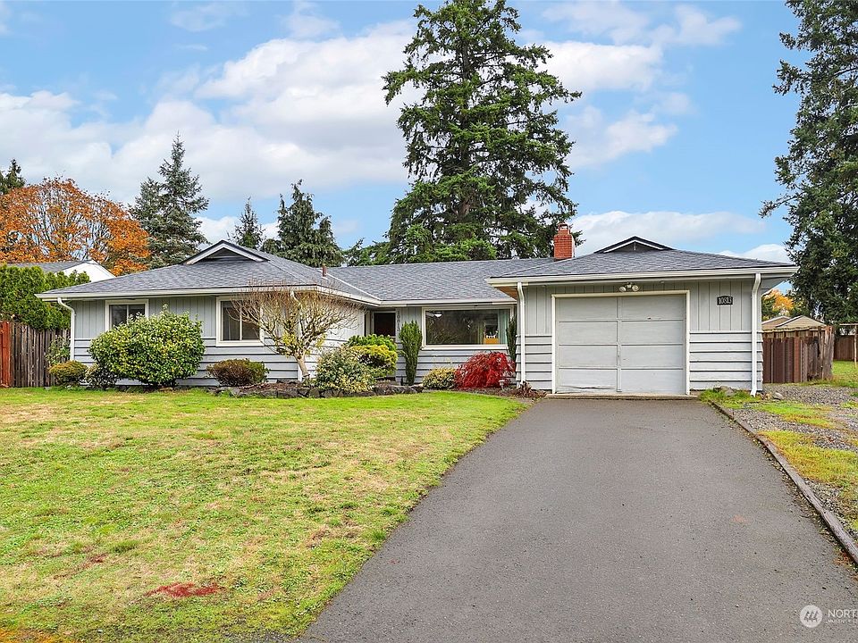 Convenient single-story living in Lakewood's Park Hill! Light and bright floor plan with large windows, laminate hardwoods throughout, a cozy gas fireplace, 2 spacious living areas, large kitchen with ample counter + cabinet space, and a sunny dining area with slider access to the backyard. Around the corner you'll find the spacious primary suite w/own 1/2 bath, plus two more good-sized bedrooms and a shared full bath. Don't miss the expansive fully-fenced backyard with a patio and raised garden beds! Large attached 1-car garage, plus RV and driveway parking. Conveniently located near everything you want and need... shops, restaurants, schools, parks, lakes and I-5 for easy commuting. Welcome Home!
