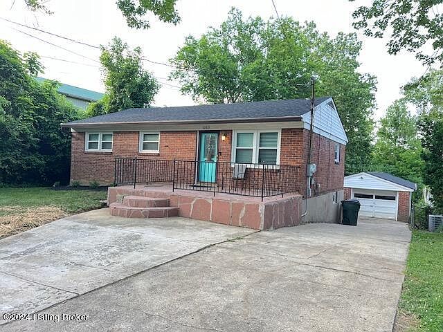 Charming home located in the desirable neighborhood of Jeffersontown awaits you. This move-in-ready home features 2 bedrooms (bedroom can be converted back to 3 bedrooms) and 1 bath with kitchen and dining area leading out to a large covered deck and a 4 car garage!