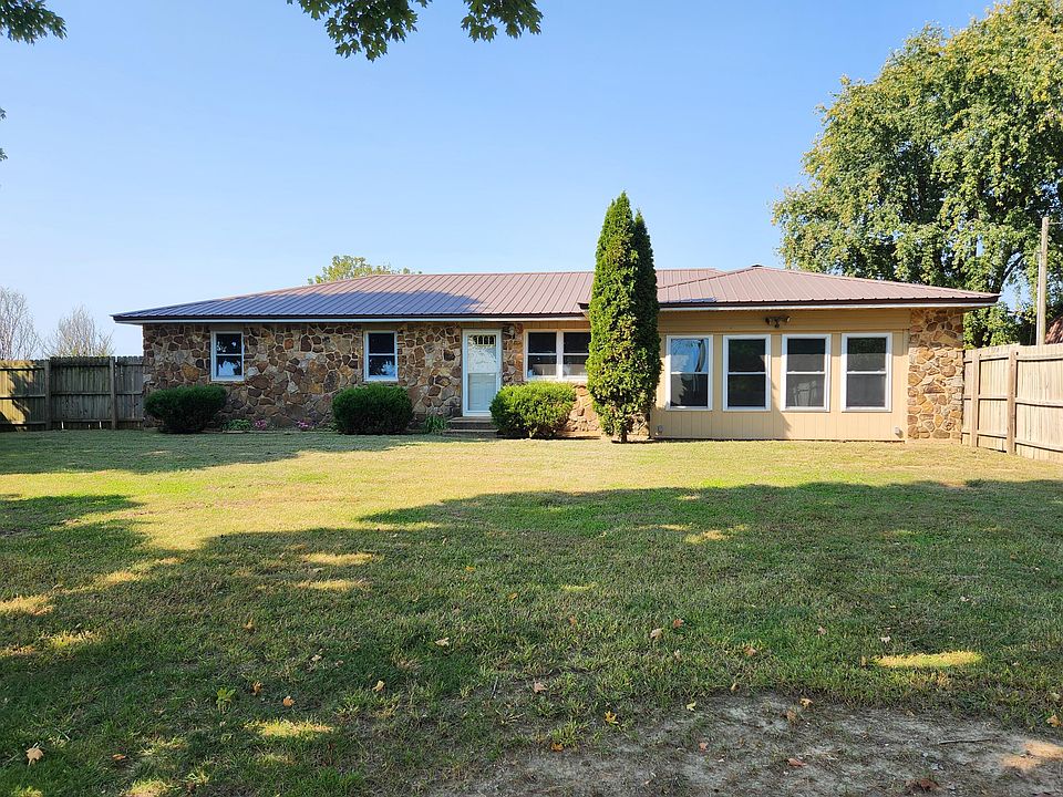 Come see this 3-bedroom, 3-bath Native Stone home on just over 2 acres,. This home has an updated Metal Roof and newer efficiency Windows, Extra Insulation, new hot water heater, as well as a partial unfinished basement and a 2 car attached garage that the owner actually added to have a 4 seasons enclosed patio area. Private Well and Lagoon, with the option to hook to Rural Water at the Highway. NO Restrictions! Positioned with convenient pull-thru access to the County Road and the 555' of Highway Frontage, this property showcases a HUGE Red-Iron building that exceeds all expectations!Ideal for hobbyists or business ventures, the expansive 50x80 building is equipped with a bathroom, a spacious office, and a versatile 20x50 loft, as well as an additional 30x32 attached shop with lean-to and newer overhead door! These buildings include 200 Amp service and Heating is efficiently managed by the impressive Heat Master outdoor wood stove, providing radiant floor heat throughout the larger building, and includes the option to heat the main house with radiant floor heat also, if you wish. Additional shop features include 14.5 ft Sidewalls, 12x16 and 12x12 overhead doors, all on concrete. Established Garden area.Don't miss the opportunity to explore this entirely unique and exceptionally functional property!