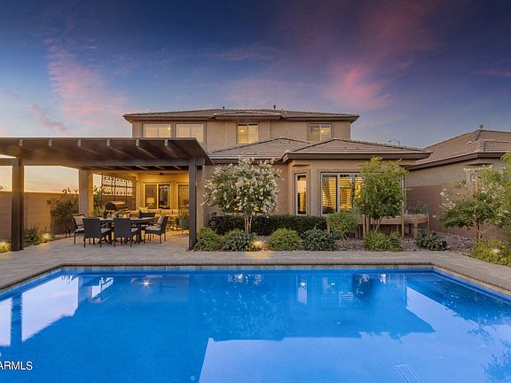 GORGEOUS 5 bed/4 bath 2896 sq ft with En Suite located in the ever growing Community of Bella Via. BEAUTIFUL light and bright open concept home with STUNNING white kitchen cabinets, Dark colored plank flooring, Kitchen Aid Appliances and built in gas cooktop. Homes features a den with beautiful glass doors, formal dining area with a breathtaking view into the backyard, shutters on the windows and Fiber Internet. Oasis style backyard with CRYSTAL CLEAR Heated pool, BEAUTIFUL landscaping, and awning perfect for entertaining. Close to all amenities, shopping, restaurants, Mesa-Gateway airport and the 202 freeway.