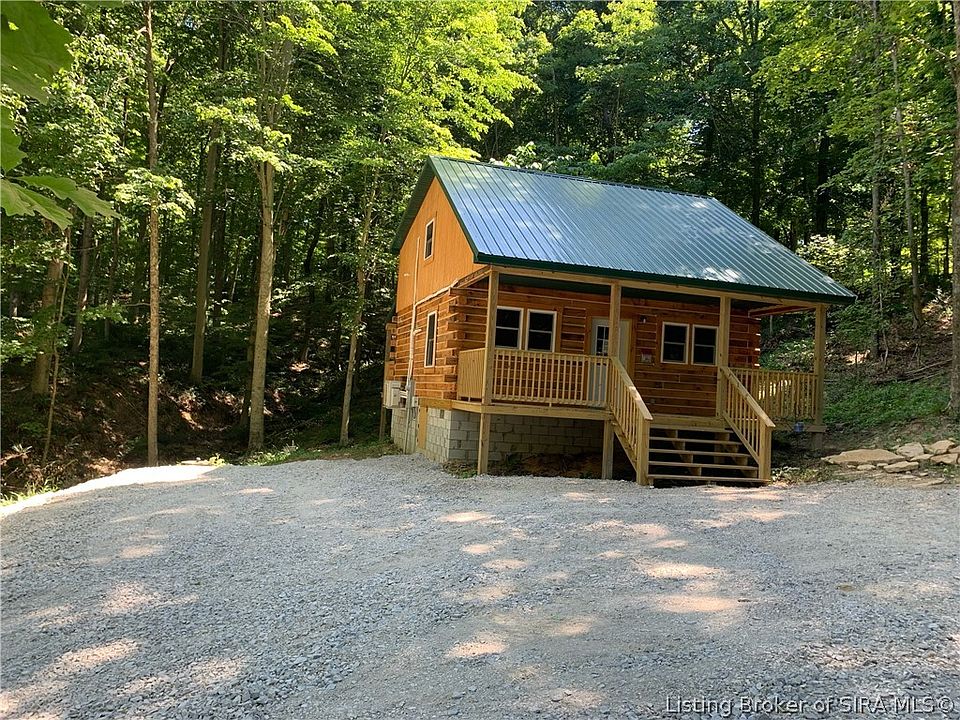 Attention all lovers of PATOKA LAKE this beautiful NEW CONSTRUCTION log cabin is ready for you to start making summer memories. Situated on this corner lot in the cabin community of Grant Woods this home has room for everyone! Entering the vaulted ceilings give you the open concept feel. The main level includes main bedroom with spacious closet, open concept living area and kitchen complete with appliances and island, full bathroom with washer and dryer connections. Upstairs the spacious 3/4 loft includes bedroom area, separate sitting area or bunk space, 2nd full bath and extra storage! Outside includes not one but TWO full length porches! The back porch offers picture perfect setting with wooded view and the ambiance and sounds of the tranquil brook. Back porch could easily be converted to screened in porch if desired. Take a look today to see for yourself what all this beauty has to offer!