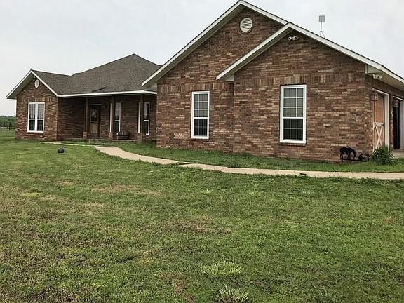 Beautiful Home located 3 miles from Okemah, 1 hour 15 minutes from OKC, and 1 hour and 15 minutes from Tulsa. This house was custom built in 2010, it includes 4 good size bedrooms, all with walk-in closets, a playroom/office (5th bedroom option), 3 bathrooms, nice size laundry room, and attached 2 car garage. Living area and master bedroom both have raised ceilings. Living, kitchen, entry, and hallways, have crown molding. This house is absolutely BEAUTIFUL. House sits on 10 acres, with a 36X48 horse barn that was built in 2014. Must see to appreciate!! **Owner is Listing Agent