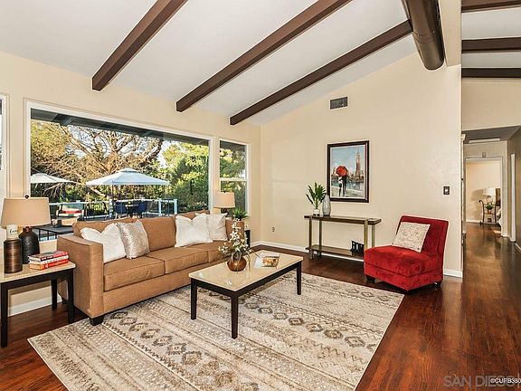 Charming single level ranch on the quiet end of Calavo Drive in beautiful Mt. Helix. This lovely home sits down below the road offering lots of privacy and serene outdoor setting. When you walk thru the front door you enter the open concept kitchen, living room area with tall open-beam ceilings. Off of the living area there is a separate dining room that opens out to the large back patio and outdoor built-in kitchen/BBQ with bar seating for family and friends. There is a beautiful deck and built-in pool.