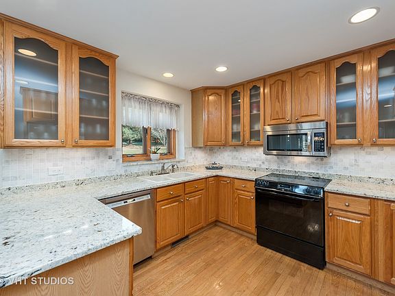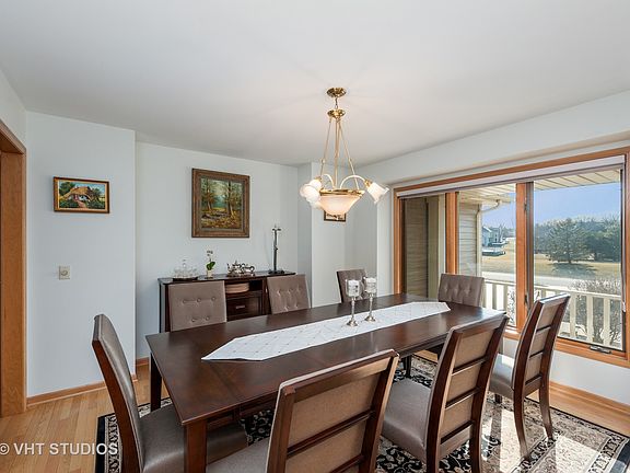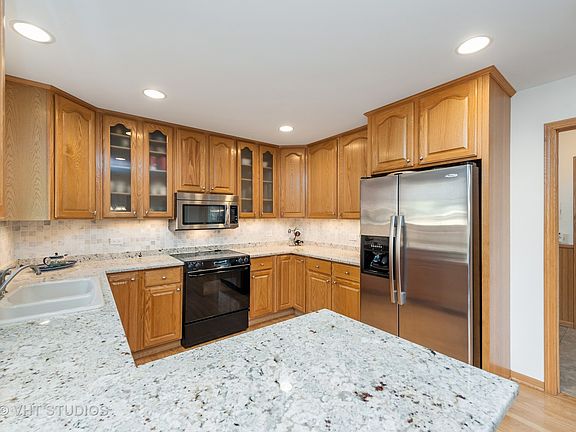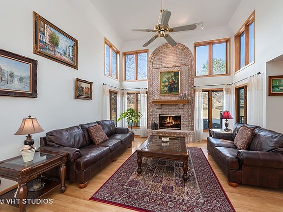 STUNNING TWO STORY SHOWCASES AN OPEN LAYOUT WITH 1ST FLOOR MASTER SUITE! Beautiful hardwoods and volume ceilings set the stage in this spacious Spring Grove home. The foyer introduces the dining room, and living room featuring a gorgeous wall of windows with floor to ceiling fireplace, and leads into the eating area and updated kitchen with granite counters, tile backsplash, and stainless steel appliances. The home includes a coveted 1st floor master suite with vaulted ceilings and master bath with walk-in closet, his & her vanities, a separate shower, and Jacuzzi tub. The second level is home to three additional bedrooms and a nicely updated full bath with custom tiling. The lower level offers plenty of storage and a generous light & bright recreation room with bar area- perfect for entertaining! The property has a convenient fenced area off the garage and professional landscaping with great outdoor living from the deck and patio... Welcome Home!