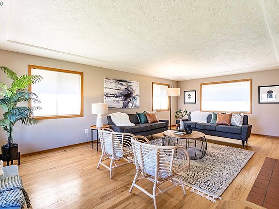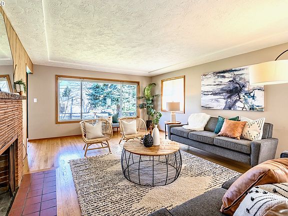 Parkrose mid-century ranch flooded with light! Open circular main floor features large family room w/period fireplace, formal dining, and remodeled kitchen w/ corian counters, ss apps, & eat in nook. 2 large bdrms & updated bathroom on main. Finished basement offers dual living with 2nd kitchen, living room, dining space, 2 bdrms, bathroom, & laundry. Tons of storage throughout with add't storage room off kitchen. Large fenced front yard & paver patio out back. Convenient to airport & freeways. [Home Energy Score = 4. HES Report at https://rpt.greenbuildingregistry.com/hes/OR10182947]