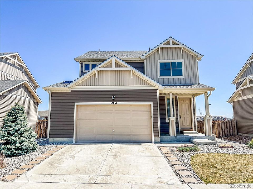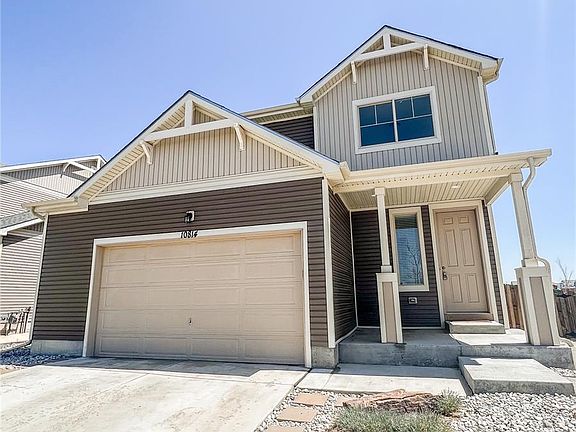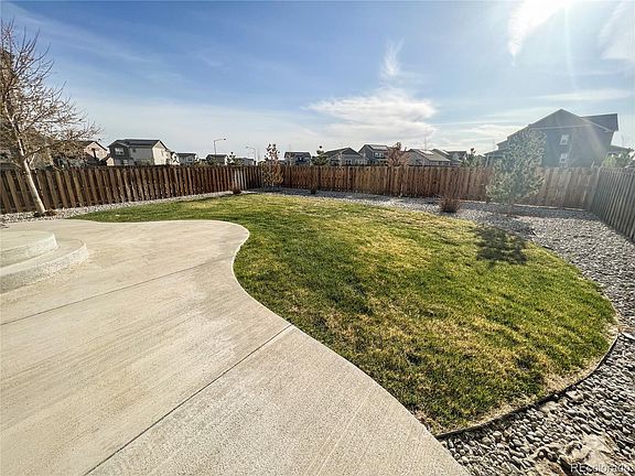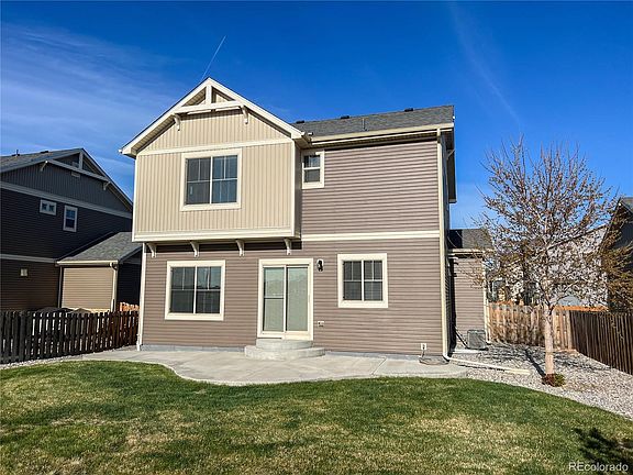 This cozy 3 bedroom 2.5 bath single family home is move in ready with fresh paint and new carpet! Built brand new in 2017 with only one owner. Open floor plan connecting the living space to kitchen area perfect for entertaining and expanding out onto the large outdoor patio. With no backyard/fence neighbor you can enjoy the views of the neighborhood in the beautiful backyard. The kitchen features beautiful dark wood cabinets and floor, an island, and stainless appliances. Refrigerator is 1 year old. The unfinished basement offers a perfect opportunity for expansion with a game room, gym or home theater. Two car extended garage. Master bedroom is very spacious. Large walk-in closet, beautiful shower and dual sinks. Laundry room right off of the master with washer and dryer included. Secondary bedrooms also have walk-in closet. Bathroom with shower and tub just at the top of the stairs. Denver is less than 30 minute drive and the airport is only 20 minutes away. Walking distance from the community pool, local rec center and elementary school. Starbucks and a local brewery located on the edge of the neighborhood.