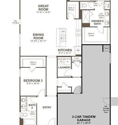 The Ranch style Larimar plan offers a seamless blend of style, comfort and functionality. The heart of this home is its open, airy kitchen, which features a center island, walk-in pantry and dining room, and flows into an inviting great room with stylish center-meet doors that provide access to the covered patio. The large master suite boasts a well-appointed bath and an oversized walk-in closet and two additional bedrooms provide ample space for rest and relaxation. This home has several upgraded features such as Quartz countertops at Kitchen, 42'' white cabinets and beautiful tile flooring in the high-traffic areas. This home also has a 3 car tandem garage. Make this dream home your own!
