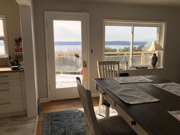 Spectacular Sound & Mountain View! Diamond in the Rough right on High Bluff in sought-after The Arroyos with beach rights and no visible power lines. Location location on quiet cul-de-sac and just 20 minutes to DT. Make this your dream home! Hardwood floors throughout the main ready to refinish. Finished daylight basement with view & large family room, bedroom, full bath & kitchenette. Expansive front and back yards with mature landscaping and fruit trees. A solid home ready to polish & sparkle!