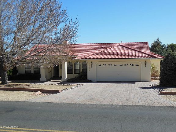 Beautiful home in the Prescott Country Club on the 6th tee box with wonderful fairway mountains and golf course views. 3 bedroom, with built-in desk in one,2 bath, large master bedroom suite, living room with gas fireplace, formal dining & breakfast area, large 2 car garage with double doors on the side for your golf cart, central vac, intercom, lots of storage, all appliances included, great landscaping, and much more. Don't miss this one!