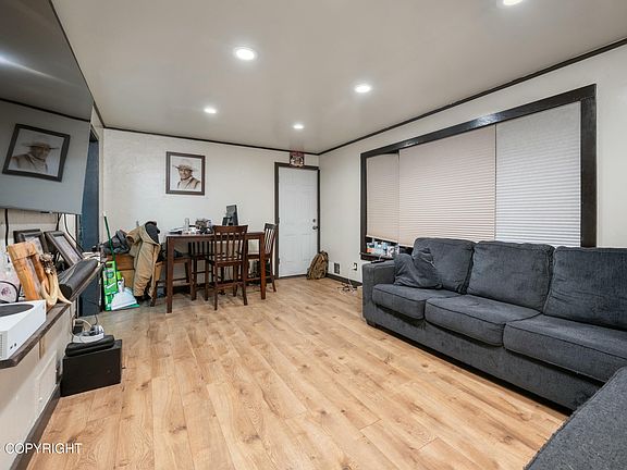 Tucked away at the base of a mountain near the Knik River, this home is a retreat with quick access to the Glenn Hwy for commuting. Featuring 2 bedrooms, 2 bonus rooms, and updated slate-tiled bathrooms, it's move-in ready. Located on a cul-de-sac. Water, sewer, streetlights, and road maintenance are covered through HOA dues. A perfect blend of comfort and convenience!