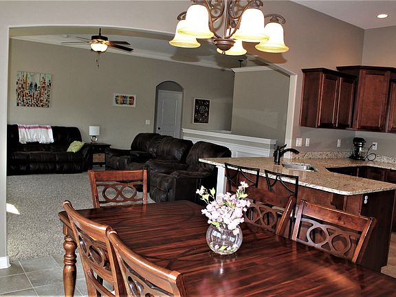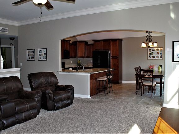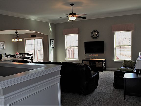 This exquisite 4 bed / 3 bath home is located in desirable Estates of Elk Run in Sellersburg, IN with Silver Creek Schools. This home features a covered front porch, living room with 10 foot ceilings and beautiful archway into the kitchen, open floor plan with split bedrooms, separate first floor laundry room, gorgeous kitchen with granite countertops, a walkout basement, and utility garage. The master bedroom features a tray ceiling with moldings and walk-in closet. The master bath has a large walk-in shower with a bench seat and double vanity that has granite countertops plus his and her cabinets. The finished walkout basement features a family room, fourth bedroom, third full bath, two large unfinished storage areas, and includes sliding doors that lead out to the vinyl fenced in backyard.