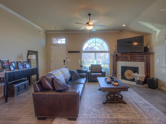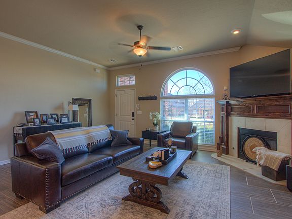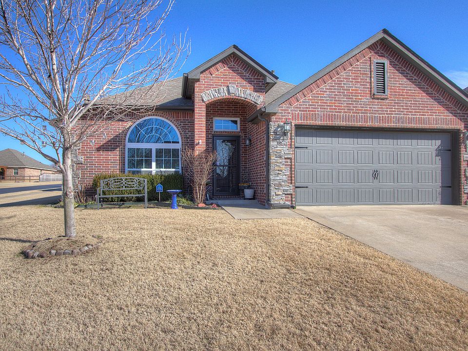 Gorgeous 1-story home in gated community w-low maintenance. Hard surface flooring throughout two living areas & bedrooms, 10 ft. ceilings, granite countertops, new light fixtures, open floor plan, huge pantry, floored attic. Located on much desired corner lot, full privacy fence, covered patio, gutters, Prof. landscaped, sprinkler, HOA covers lawn maintenance. Energy efficient. Jenks schools, convenient access to Hwy 75 & Creek turnpike.