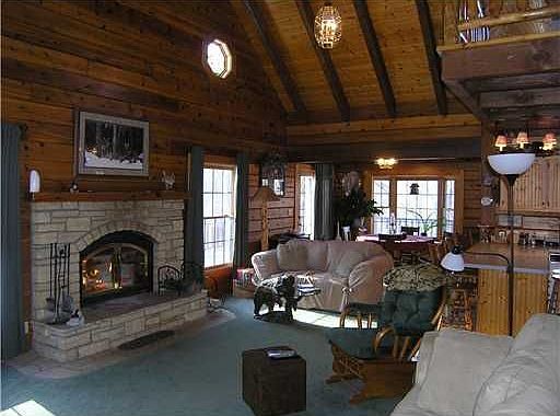 CUSTOM LOG HOME ON 1 3/4 ACRES, 1 1//2 STORY HOME WITH 2 STORY GREAT ROOM AND LOFT AREA. 3 BEDROOMS, 3 BATHS, WALKOUT LOWER LEVEL, ATTACHED 2 CAR AND DETACHED 28' X 36' GARAGE. LARGE WRAP AROUND PORCH AND LARGE DECK. LANDSCAPED POND. GEO THERMAL HEATING. CUTOM HAND MADE CABINETS.