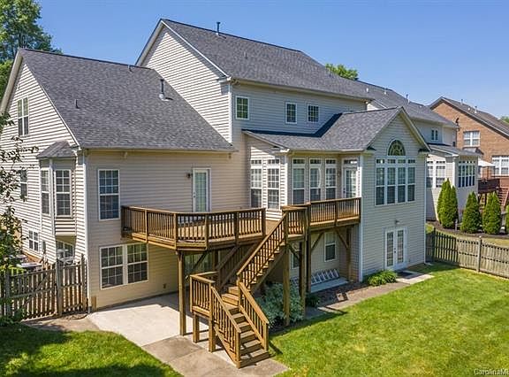 Priced to Sell! Beautiful home located on .62 acre lot in heart of Ballantyne! Over 5300sqft w/6 bedrooms and 3.5 bathrooms. Large deck accommodates fenced yard overlooking backwoods. Underground sprinkler system and two car garage. Spacious open floor plan includes two-story great room w/gas fireplace. Floor to ceiling windows create abundant light. Desirable Master Suite located on main features trey ceiling and bay window. Hardwood floors almost completely cover first two levels. Full basement hosts living room, game room and bar...Perfect for entertaining. Listed under appraisal value! Convenient to I485, Stonecrest at Piper Glen and Blakeney Shopping Center.