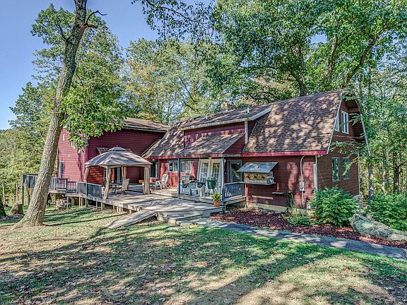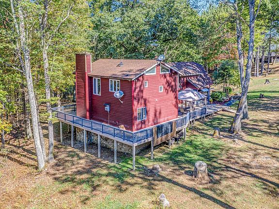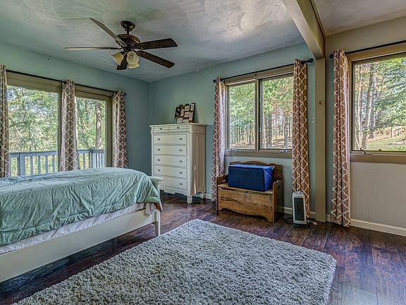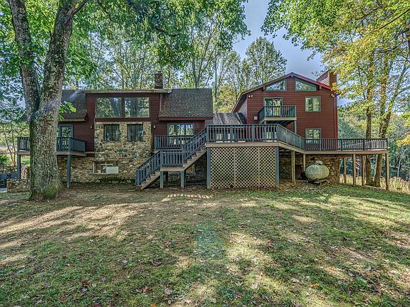 Enjoy this private mountain estate with 34 acres and 360 degree views atop the property. Property includes a spacious 3300SF cedar sided home, a barn, pond and a good mix of open and wooded land. The home includes hardwoods throughout most of the home, a great room with floor to ceiling stone fireplace and two private master suites one on each wing of the house. A wraparound deck around most of the home making it ideal for entertaining. Potential for in-law quarters. Home needs finishing touches throughout areas of the home. Recent updates include new flooring in sections of the home, drywall repairs made in kitchen (since picture), new entry doors, 4 new large picture windows replaced, new roof on master addition. There is an abundance of wildlife and would be ideal for horses.