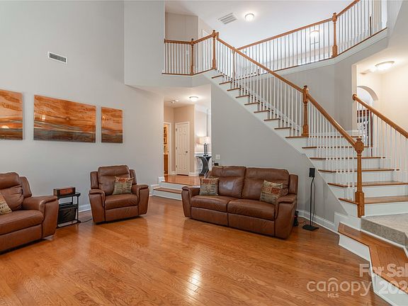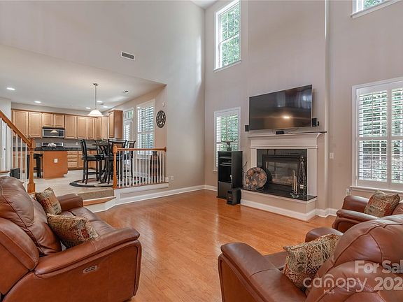 A stunning full brick home featuring an open floor plan. Enter through the impressive two-story foyer, leading to a versatile office/flex room and an elegant dining room. two-story great room with a cozy fireplace & beautiful wood floors, natural light from numerous windows with plantation shutters. The kitchen offers abundant storage, a large pantry, gas stove, island, granite countertops, and a charming breakfast nook. Back porch is ideal for grilling & entertaining, overlooking a fenced yard. Main level includes a guest bedroom with a full bathroom, suitable for generational living. Upstairs, the massive primary bedroom features trey ceilings, an ensuite with a garden tub, walk-in shower, double sink vanity, and two closets. Two additional bedrooms share a convenient Jack and Jill bathroom.This home is in a prime location, close to shopping, grocery stores, just 7 miles to Davidson, 24 miles to Charlotte, and 9 miles to Lake Norman. A two-car garage completes this must-see property.