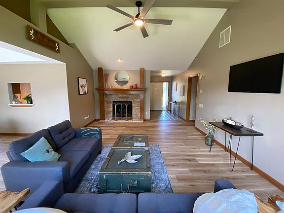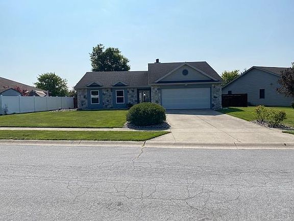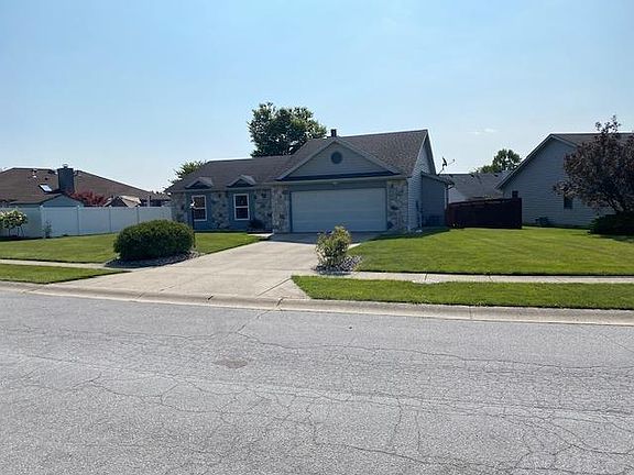 Welcome home! This spacious 3 bed 2 full bath ranch instantly makes you feel right at home with vaulted ceilings, natural light and a beautiful fireplace. --New Furnace and A/C in 2017. BRAND NEW: Garage Door Opener, Front Windows, Ceiling Fan w/ remote, gas Fireplace Insert w/ remote, Carpet and Vinyl plank flooring throughout-- Enjoy all the amenities without the hassles! River Bend Bluffs has 3 community pools (2 heated), an amazing playground, tennis court, paved trails and beautiful ponds. Located on a quiet cul-de-sac street, this home features a large over-sized 2 car garage w/ workbench, extensive landscaping, huge wood deck (recently updated with lattice for privacy) great for entertaining/relaxing, NEW wood/VINYL privacy fenced-in yard, front door with side-light window, foyer entryway, large bedrooms and an eat-in kitchen. Primary bedroom features a full bath w/ walk-in closet. Stainless Steel appliances stay, including Microwave, Refrigerator, Dishwasher and Range/Oven, along with the washer and dryer. Wonderful schools at Leo/Cedarville, located close to all the newer stores in the area and it's easy to get downtown, all that is missing here is YOU!