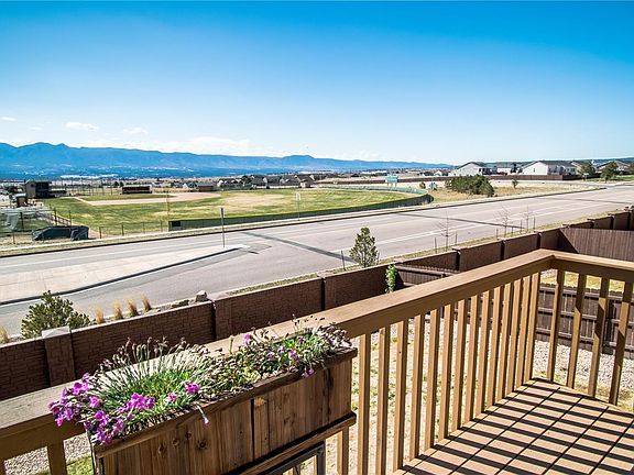 Amazing VIEWS of Pikes Peak, AFA & Front Range from the rear of this beauty. Light & bright beautifully upgraded home! Attractive ML living w/master suite + 2nd BR & full bath. Wood flooring, brand new carpet thru out, new kitchen and bath granite, unique square sinks, distressed wood ceiling fans, wrought iron railings. Gorgeous kitchen tall cabinets & huge pantry. You'll enjoy the Colorado beauty from the deck. Attention to quality and detail in the recently finished walk-out basement that incl 2 BRs + bath. Beautiful large family room w/custom wood wall that fits the largest TV you can bring! Adjacent is a den w/custom bar featuring granite, distressed wood, wine rack, built-in wine frig, cabinetry, bamboo floors plus flex space. Basement bath showcases wide planked distressed look tile, large walk-in shower & granite sink. Wide hallway w/linen closet. Easy walk to Pine Creek HS. Ready to enjoy!