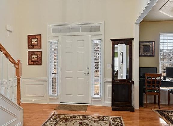 Move-in ready 5BR/4BA+bonus on private lot in highly sought after Skybrook North Villages. Cherry kitchen w/granite, stainless steel appliances, tile backsplash, gas range, microwave. Main level hardwoods & guest suite w/full bath. Dining room w/tray ceiling, chair rail, and wainscoting. FR with gas log fireplace. Open floorplan with 2-story foyer. Large master BR up w/tray ceiling, walk-in closet, sep large shower, oversized tub, & tile. Upstairs laundry & bonus room. BR3 w/private bath. BR4 & BR5 w/jack & jill bath. Fenced level lot with patio. Excellent schools! Won't last!