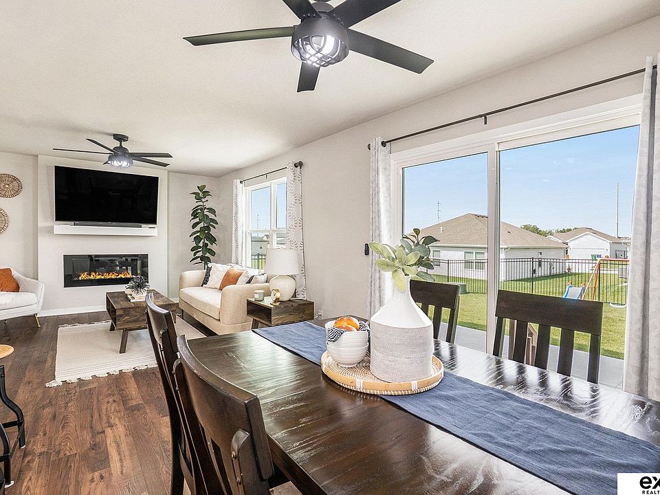 Welcome to this stunning two-story home in Tiburon Ridge North offering 4 bedrooms, 3 bathrooms, and over 2,200 sq. ft. of living space. Would you like a home that has walk-in closets in EVERY bedroom? Well, this home offers that and more! The open-concept main level showcases engineered hardwood floors, while upgrades like a whole-home water softener, finished garage with epoxy flooring, and 240V EV charger add comfort and modern efficiency. Outside, enjoy a fully fenced backyard with an extended patio—perfect for entertaining—plus a full sprinkler system for easy lawn care. Located near top-rated Gretna schools, shopping, and dining, this home combines style, function, and location with more upgrades than other new construction—without the wait.