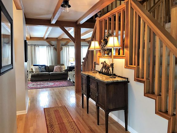 Welcome to 10816 Sun Ridge Rd! This 4-bedroom, 3.5 bath home in Old Taylor Place is stunning and very unique! It portrays a luxury farmhouse feel with it's oak wood beams throughout and the open floor plan. The house welcomes you as soon as you step onto the large covered front porch. As you walk into the foyer you will be blown away! The first floor offers lots of sunlight into the dining room, great room & large eat-in kitchen and has amazing views all the way to the top of the second-floor ceiling. The kitchen features large eating area, granite counter tops, gas range with ceramic tile floors, peninsula bar and a large planning desk. There is also a bedroom (currently used as office) & half bath on the first floor. You will also find two large walk-in pantries and a door to the screened-in porch overlooking the 1-acre lot and garden. The second floor is where you will find a loft sitting area, 3 bedrooms (including the master suite), & 2 full baths. The master suite has its own bathroom & a large closet. There is also an abundance of additional storage on this floor. The lower level has been completely remodeled with new lighting & painted tall ceilings that have great height in all of the rooms. You will find a family room, a custom-built kid's log cabin under the basement stairs, a potential 5th and 6th bedroom, a full bath & laundry/furnace room. There have been LOTS OF UPDATES including: new Window World windows, custom-built WIFI enabled Cunningham garage doors with keyless entry, new stainless steel dishwasher, new 80 gallon hot water heater, new septic pump installed, newer A coil installed on upstairs heat pump, new light fixtures (inside & outside), new waterproof luxury vinyl wood plank flooring in the basement, & fresh paint. The house also features an underground electric dog fence & electronic hardware (a $1500 value), a large garden in the left rear corner of the yard with shed that will convey. Neighborhood amenities include: Pavilion (for nominal rent), Catch & Release fishing pond, Basketball court, 3 miles to N Oldham campus, barn with 5 horse stalls for rent and 2 paddocks. Call today to see this stunning home in Goshen in the Oldham County School System!