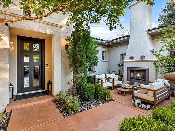 Welcome to The Vineyards w/ mature & lush landscaping. Built by Christopher Homes, the home feat. 4 beds, 4 baths, & a private backyard. The semi-custom boasts 3,668 sqft making it the largest 1 story in the community. Upgrades are found T/O, starting in the courtyard, feat. a fireplace, as well as a custom iron & glass front door paired w/ the entry gate. Inside, the plan reveals itself first with the turret entry open to the dining room & a lounge outfitted w/ custom built-ins & stone counters. The great room offers flexible design, w/ a built-in media center, fireplace, & seamless transition to the chef's kitchen & bar. Appliances include Wolf range, Miele coffee maker, 2 wine fridges, & built-in cabinetry-matched refrigerator. The spa-like primary bed is steps away from the pool/spa & feat. a beautifully finished bath. 2 guest beds offer a Jack-and-Jill bathroom. While bed 4, feat. an en-suite bath, wainscoting, built-ins, & walk-in closet. Details too numerous to list.