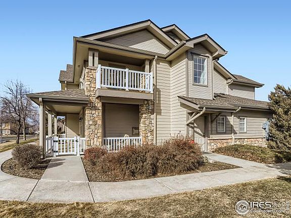 One level living in this top floor, end-unit, 2bed/2bath condo with mountain views! Light & bright open floorplan with separated bedroom areas. Primary suite w/walk in closet & mountain views; 2nd bedroom w/walk in closet; large laundry room w/storage & utility closet; balcony w/views & storage closet; kitchen with lovely upgraded cabinets & all appliances included. Attached 2 car tandem garage with storage space. Small coveted community with a pool & hot tub. EZ commute in convenient location - close to grocery store, restaurants, shopping, nearby trails & I25/Hwy 119. Community also has lots of visitor parking!