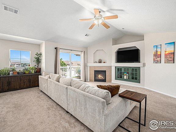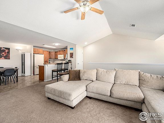Seller is motivated! Freshly painted interior! Experience easy living in this spacious upper-level FHA approved condo with no neighbors above and stunning mountain views. As the largest unit in the community, it offers an open layout with vaulted ceilings, a generous living area, and seamless flow between the kitchen and dining spaces. Step out onto the oversized 29-foot covered deck-perfect for enjoying the views or relaxing outdoors. The thoughtfully designed floorplan provides privacy with the primary suite, complete with a walk-in closet and 5-piece bath, located separately from the two secondary bedrooms. A full laundry room with washer and dryer included and an attached 2-car garage add everyday convenience. The HOA covers water, sewer, trash, all landscaping and lawn care, plus Comcast TV and Xfinity high-speed internet-making for truly low-maintenance living. Located within walking distance of Ziggi's Coffee, a local sports bar, King Soopers grocery and pharmacy, urgent care, dental offices, and multiple restaurants-everything you need is just steps away.
