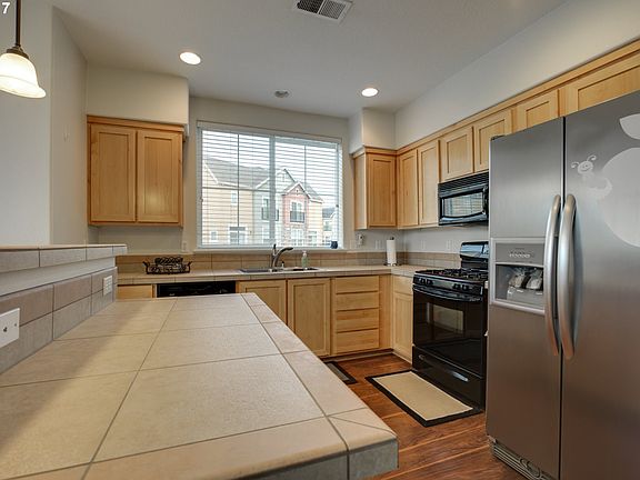 Immaculate condo features great room living with vaulted ceilings and lots of windows, streaming in natural light. SS appliances, island, tile counters, pantry, gas stove, gas fireplace, balcony and more! Both beds have baths, 1 with Walk in closet. Laundry upstairs (washer and dryer stay!). Hardwoods downstairs in kitchen, dining and hall. Brand new carpet throughout. Neighboring Max commuting, Nike and Intel, Tanasbourne!