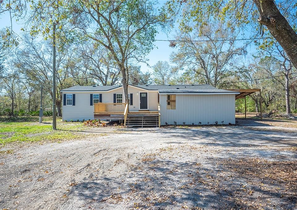 Spread out on almost 5 beautiful acres in North Lakeland! This newly renovated home sits at the end of a long driveway through your property, providing privacy and space to enjoy your land. The spacious living room, dining room, and kitchen welcome you to this home, with brand new luxury vinyl plank installed throughout. The kitchen has been fully renovated, featuring brand-new stainless-steel appliances, granite countertops, and new cabinets. Leave it open or add a kitchen island, there’s plenty of room! The family room is next to the kitchen, providing additional living space and the perfect layout for entertaining family and friends. Each bedroom has been updated with new plush carpeting and new ceiling fans. The primary bedroom’s ensuite bathroom is a true oasis! This bathroom has been renovated featuring a double sink vanity, relaxing garden tub, new subway shower tile, and a linen closet providing extra storage. The guest bathroom has been equally updated with a new vanity, granite countertop, and new subway shower tile. This home also has a new A/C, new electric water heater, updated plumbing, and the laundry room is conveniently located inside off the kitchen. The exterior of this home provides everything an outdoor enthusiast could be looking for. The home itself has been refreshed with a new roof (2025), new landscaping, and fresh paint. There is also a large front deck, covered storage area, and 2-car carport. The gated, sprawling 4.72-acre property hosts beautiful trees, a small pond, and plenty of room for your vehicles, boats, and even horses! Don’t miss your chance to see this slice of North Lakeland paradise – schedule your showing today!