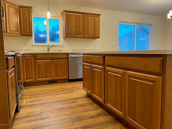 Yes, this is a ''resale'' BUT GOOD AS NEW! Greatroom w/Luxury Vinyl Plank Flooring, Solid Surface Counters, Cherry Cabinets, Stainless Appliances, Gas Fireplace, Cathedral Ceiling w/fan/light. MBR w/trey ceiling/fan/light, his/her closets, on suite bath. BIG 672 SF garage; RV/Toy parking. Convenient to Glenn Hwy/JBER. Turn key and move in ready! Adjoining lot available @ $135,000. Spead out!