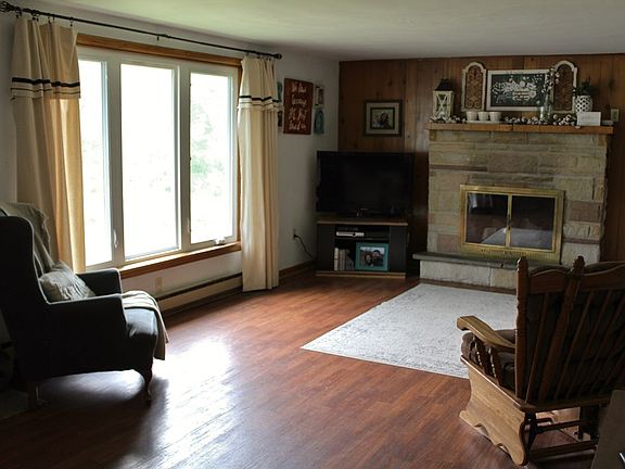 Great starter home on large lot in the country, but close to town (backs on to Victoria Manor). Living room features gas fireplace for cozy winter evenings and the enclosed porch/sunroom is a perfect 3 season getaway. Large front yard for kids, gardening.