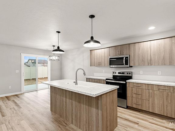 Embrace the comforts of a brand new home in Caldwell, Idaho. The Owyhee 1597 floorplan is a two-story home that effortlessly blends functionality with modern design. Downstairs, you'll discover a practical half bathroom, offering convenience for both residents and guests. The entryway brings you into the heart of the home, an open-concept living area where the kitchen and living room come together, creating a welcoming space for gatherings and daily life. Large windows fill the space with natural light, enhancing the inviting atmosphere. Head upstairs to find an additional full bathroom serving the two generously-sized bedrooms, streamlining morning routines. The primary suite is a standout feature, complete with a walk-in closet for your wardrobe and storage needs. With its well-planned layout, this home offers both style and practicality. Photos are of the actual home!