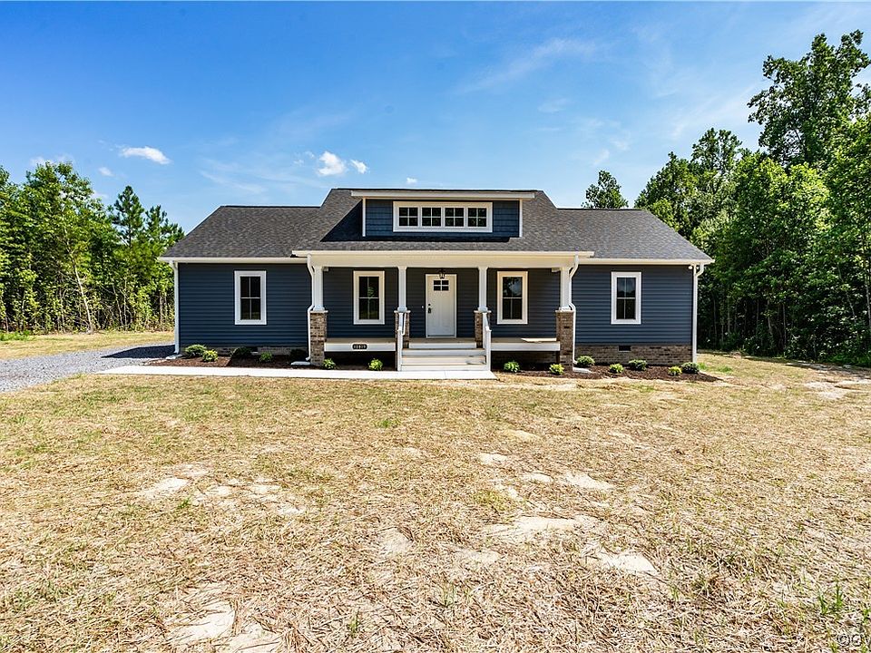 Stunning custom ranch plan on an awesome 3 acre lot in Dinwiddie. Tons of curb appeal on this ranch plan, great layout, and floor plan. This is definitely a rare find and wont last long. This beauty features 3 spacious bedrooms, 2 full bathrooms, and upgrades throughout. The family room as you walk in the front door is open to the kitchen and has a vaulted ceiling. Quick close and special financing options available. Come see this one today.