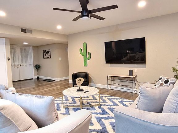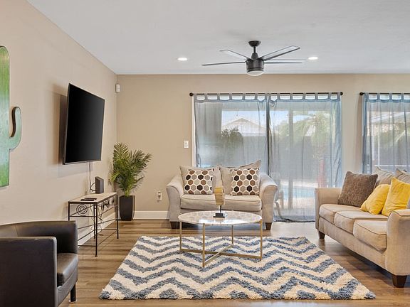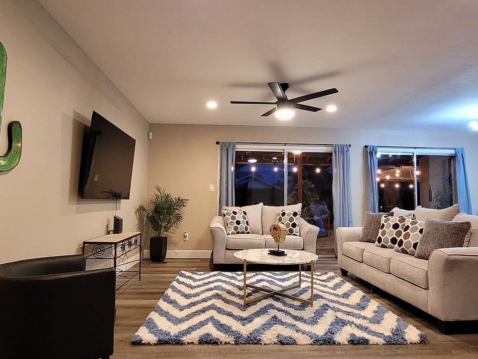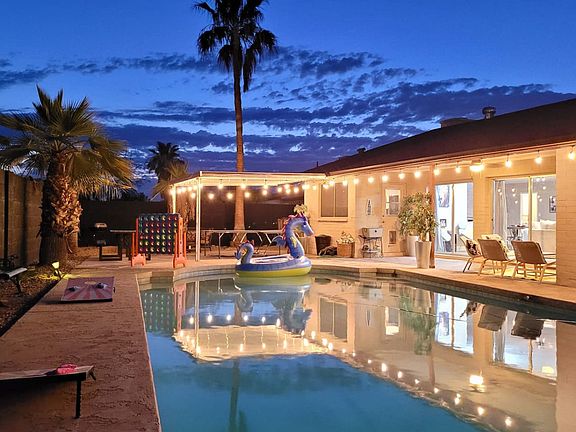 Welcome to Glendale getaway, a perfect retreat for sports fans or those seeking relaxation in the sunshine. This beautiful 3-bedroom, 2-bathroom house is fully furnished with modern amenities, offering a little oasis for your next stay. Enjoy the great patio area with a pool, outside games, a grill, and a TV. The Arizona Cardinals stadium is just 2 miles away, Westgate Entertainment Center is 1.8 miles away, and popular dining spots like Hash Kitchen and Cold Beers and Cheeseburgers are only 1.6 miles away. We will accept one dog with a pet fee of $200, which must be paid upfront. Emotional support animals will have a pet fee of $150. Guests must bring a kennel for the dog and clean up after their pet. The pet fee is not an additional cleaning fee, and extra charges may apply if additional cleaning is needed. A propane grill and tank are provided, and if the propane tank is empty, guests can refill or exchange it at Circle K or Walmart, and we will reimburse the cost. Firewood for the fire pit follows the same guidelines. The maximum occupancy is 10, and if exceeded, or if there are more than 3 vehicles, you agree to forfeit the reservation with no refund and immediate eviction. Unauthorized vehicles or guests will result in eviction with no refund. No large gatherings or parties are allowed to maintain neighborhood integrity. The pool is not heated, and guests are responsible for their own safety. No smoking inside the home or within 15 feet of windows or doors, with a minimum fine of $750 for violations. Cars may only be parked in the driveway or one in the garage, with no street parking allowed. Check-in is at 4 PM, and late check-out fees apply. A $100 fee will be charged if guests haven't checked out by 11:30 AM, with an additional $50 for each half-hour thereafter. Please set the AC to 80 degrees upon check-out to avoid potential damage. If any house rules are broken, you agree to forfeit the entire reservation amount and additional fees.